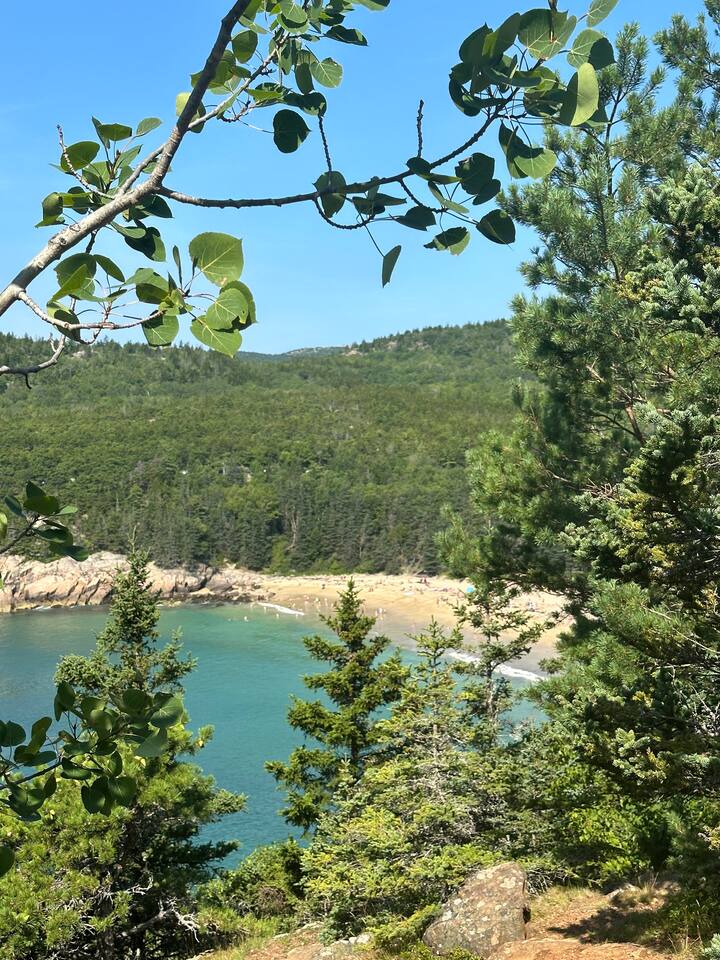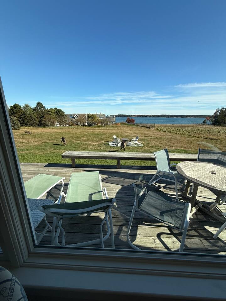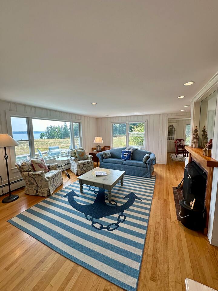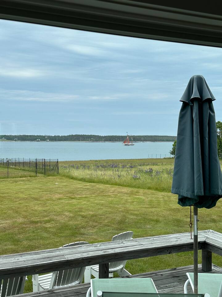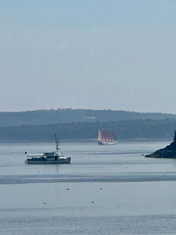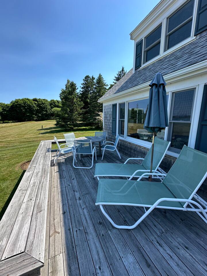 Hard Aground is an ocean-view home uniquely positioned right outside Southwest Harbor. Enjoy picturesque views of the Western Way and Cranberry Island from the wood deck, dining, living, primary bedroom, and upstairs bedrooms. Guests will also enjoy the abundant wildlife of this quiet location. Deer and different types of birds often come to graze in the open fields each morning and evening. The home has a galley kitchen with granite counters, stainless steel appliances, dishwasher, Keurig and drip coffee maker, toaster, full pots and pans for cooking and hopefully anything else a family might need; there is dining/breakfast room with windows on each side for stunning views plus outdoor seating for dining. The family room has views out over the deck to the water, door to the deck, and smart tv for nightly movies. On the main level, you will find a room with king bed overlooking the lawn with water views and smart tv, another bedroom with queen-size bed, and a shared updated bathroom with walk-in shower, and laundry. The upstairs is cozy, with two bedrooms with water views, queen-sized beds, both with smart tv’s, one with crib, and an updated bathroom with a bathtub. Outside guest can enjoy a propane fire pit, Adirondack chairs, sun loungers, outdoor dining and propane grill. The property comes with two dedicated parking places. Many people choose to stay in Southwest Harbor during their visit to Acadia National Park for its convenient location and more relaxed pace. Southwest Harbor is situated just west of the southern entrance to Somes Sound on Mount Desert Island. It is the largest municipality on the island's southwestern "quiet side." The town is a hub of activity, with various great restaurants, shops, galleries, and eateries worth exploring. Some of these include the charming Little Notch Bakery, the renowned Red Sky, the local favorite Peter Trouts, The Cygnet Gallery, Cornerstone Gallery, Beals Lobster, Sawyers, Cafe Dry Dock, Tom Cat Tide, The Store, Southwest Cycle, and many more! Many come to Mount Desert Island to visit Acadia National Park and enjoy its beauty. You can get a yearly pass to the park or pay as you go. Our suggestion is to get the yearly that you can visit other national parks. Some of our favorite trails, which are mostly easy and dog friendly, are Asticou and Jordan Pond Path, Little Harbor Brook Trail, Carriage Trail Loop, Wonderland, Ship Harbor Trail, Echo Lake Trail, and many more. Our suggestion is to download the All Trails App and search for your skill level. Other exciting things to do is to go on a whale watching tour, ride the ferries to neighboring islands like Cranberry or Little Cranberry and explore those. Visit the bustling town of Bar Harbor and the smaller villages around the island. You can do all this by car or use the Island Explorer buss.