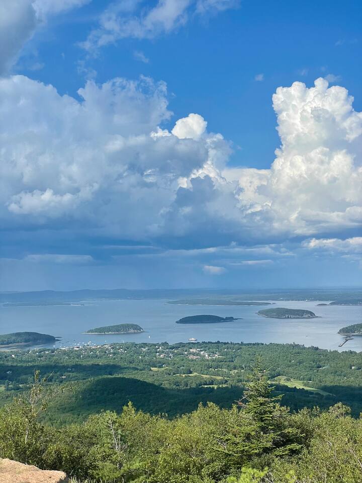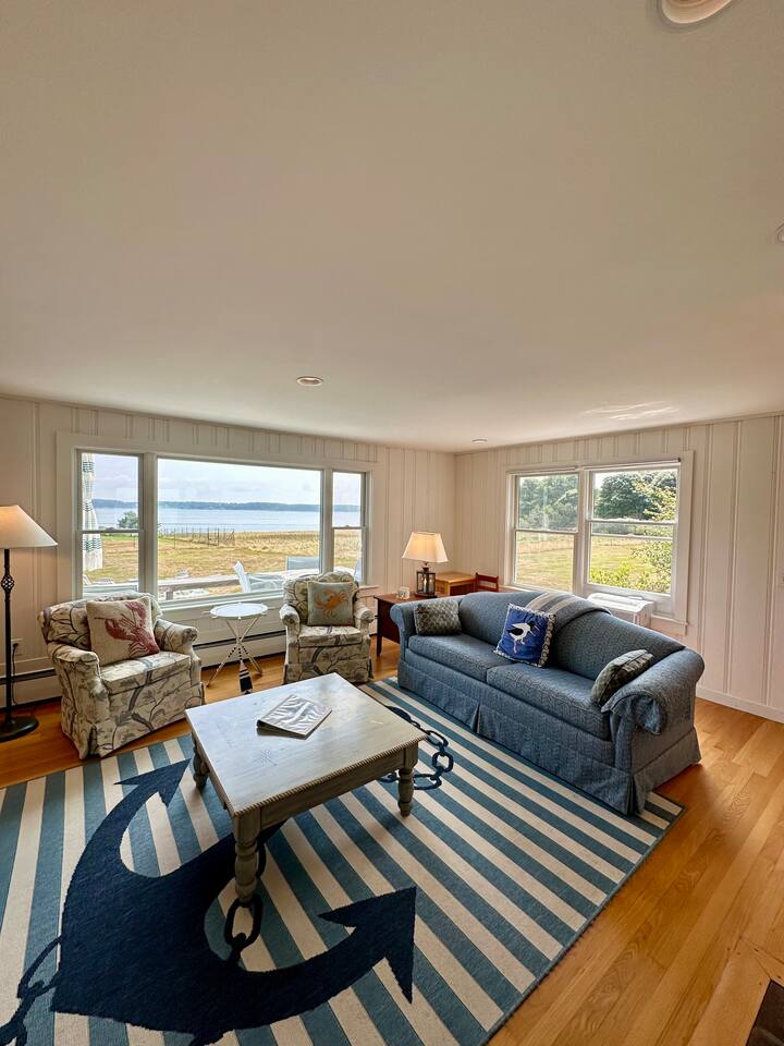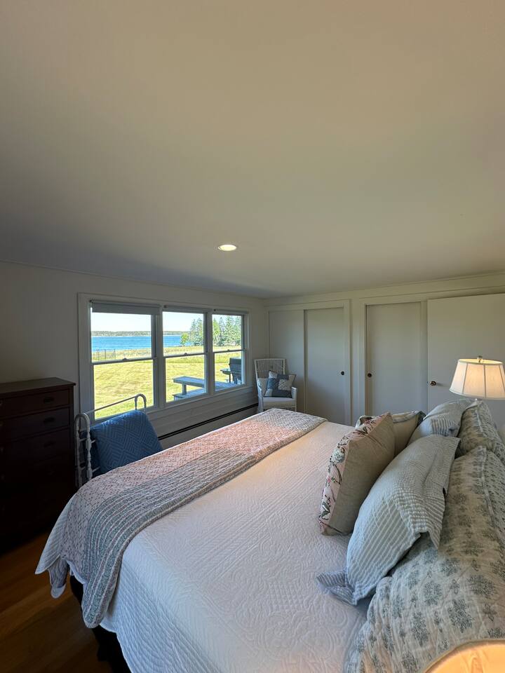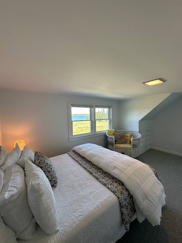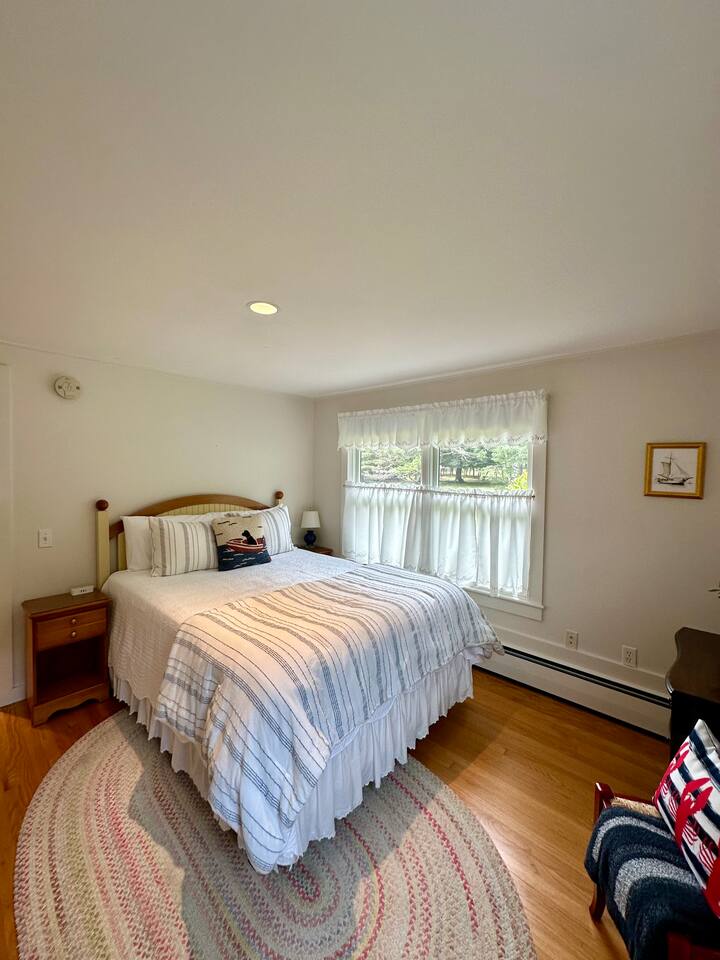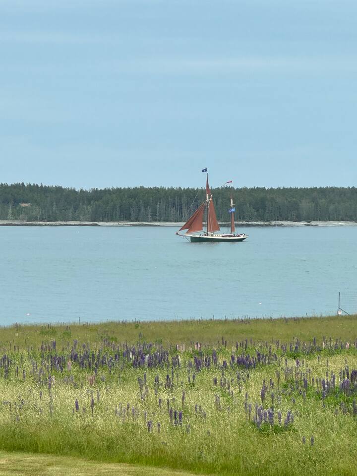 Hard Aground is an ocean-view home uniquely positioned right outside Southwest Harbor. Enjoy picturesque views of the Western Way and Cranberry Island from the wood deck, dining, living, primary bedroom, and upstairs bedrooms. Guests will also enjoy the abundant wildlife of this quiet location. Deer and different types of birds often come to graze in the open fields each morning and evening. The home has a galley kitchen with granite counters, stainless steel appliances, dishwasher, Keurig and drip coffee maker, toaster, full pots and pans for cooking and hopefully anything else a family might need; there is dining/breakfast room with windows on each side for stunning views plus outdoor seating for dining. The family room has views out over the deck to the water, door to the deck, and smart tv for nightly movies. On the main level, you will find a room with king bed overlooking the lawn with water views and smart tv, another bedroom with queen-size bed, and a shared updated bathroom with walk-in shower, and laundry. The upstairs is cozy, with two bedrooms with water views, queen-sized beds, both with smart tv’s, one with crib, and an updated bathroom with a bathtub. Outside guest can enjoy a propane fire pit, Adirondack chairs, sun loungers, outdoor dining and propane grill. The property comes with two dedicated parking places. Many people choose to stay in Southwest Harbor during their visit to Acadia National Park for its convenient location and more relaxed pace. Southwest Harbor is situated just west of the southern entrance to Somes Sound on Mount Desert Island. It is the largest municipality on the island's southwestern "quiet side." The town is a hub of activity, with various great restaurants, shops, galleries, and eateries worth exploring. Some of these include the charming Little Notch Bakery, the renowned Red Sky, the local favorite Peter Trouts, The Cygnet Gallery, Cornerstone Gallery, Beals Lobster, Sawyers, Cafe Dry Dock, Tom Cat Tide, The Store, Southwest Cycle, and many more! Many come to Mount Desert Island to visit Acadia National Park and enjoy its beauty. You can get a yearly pass to the park or pay as you go. Our suggestion is to get the yearly that you can visit other national parks. Some of our favorite trails, which are mostly easy and dog friendly, are Asticou and Jordan Pond Path, Little Harbor Brook Trail, Carriage Trail Loop, Wonderland, Ship Harbor Trail, Echo Lake Trail, and many more. Our suggestion is to download the All Trails App and search for your skill level. Other exciting things to do is to go on a whale watching tour, ride the ferries to neighboring islands like Cranberry or Little Cranberry and explore those. Visit the bustling town of Bar Harbor and the smaller villages around the island. You can do all this by car or use the Island Explorer buss.