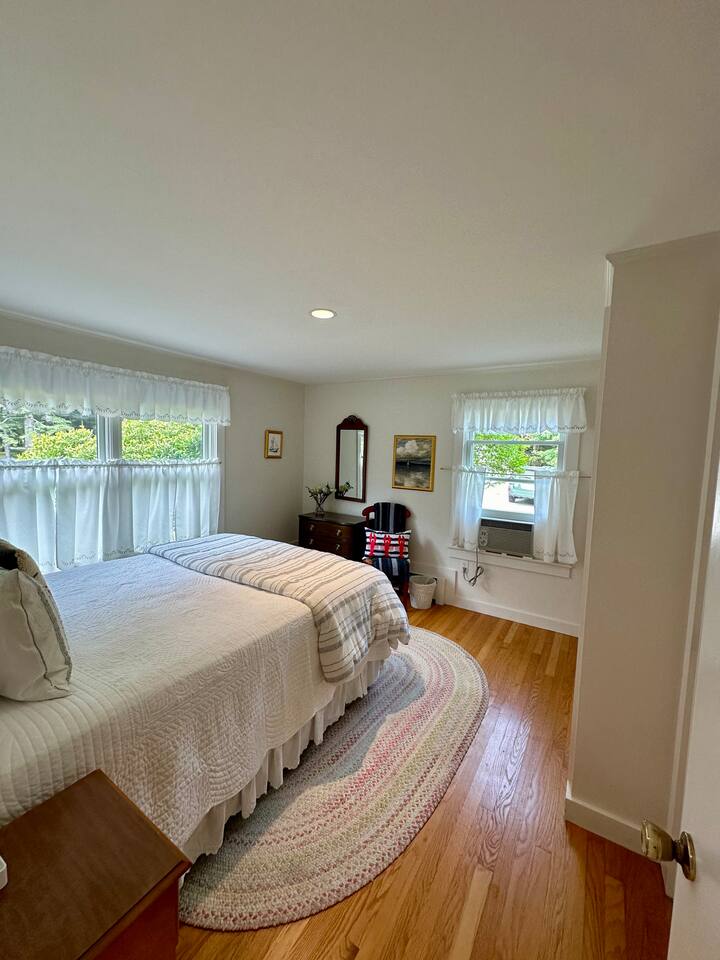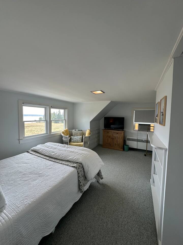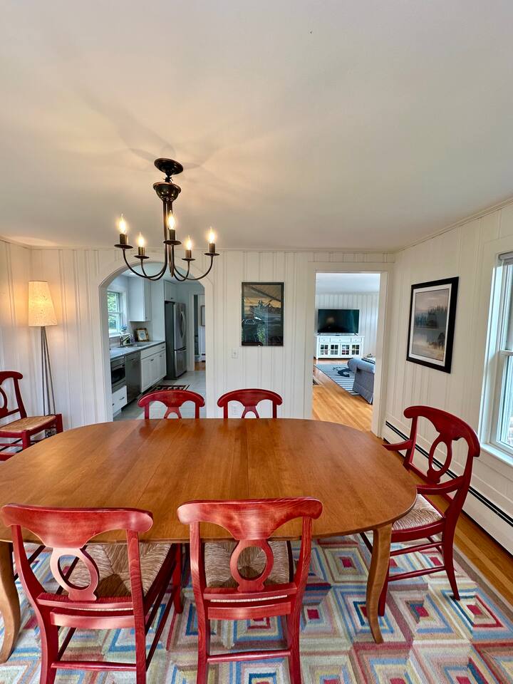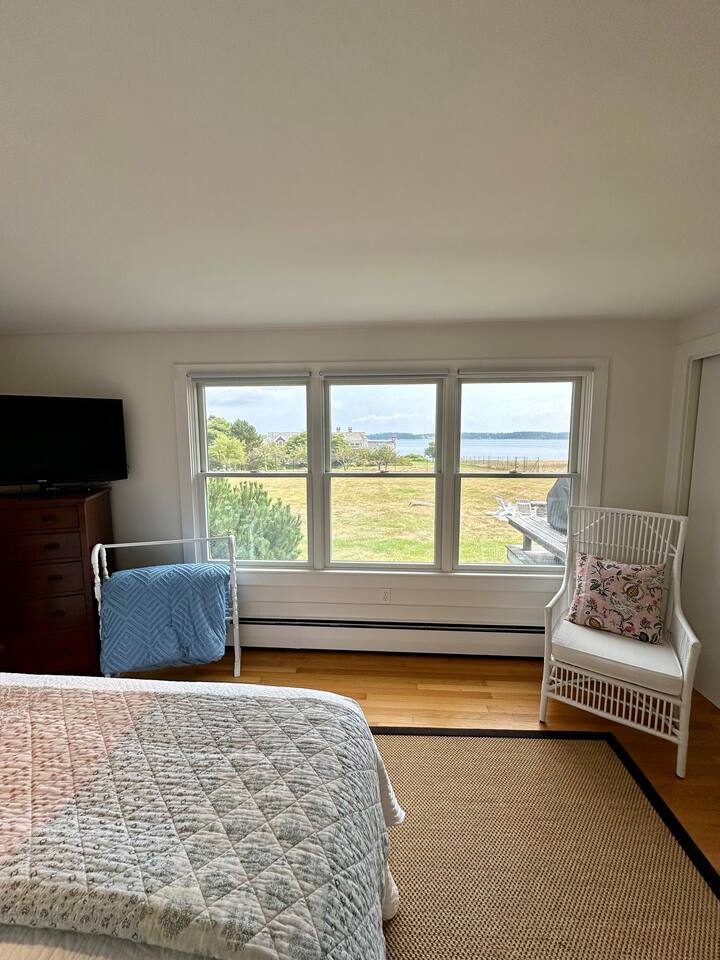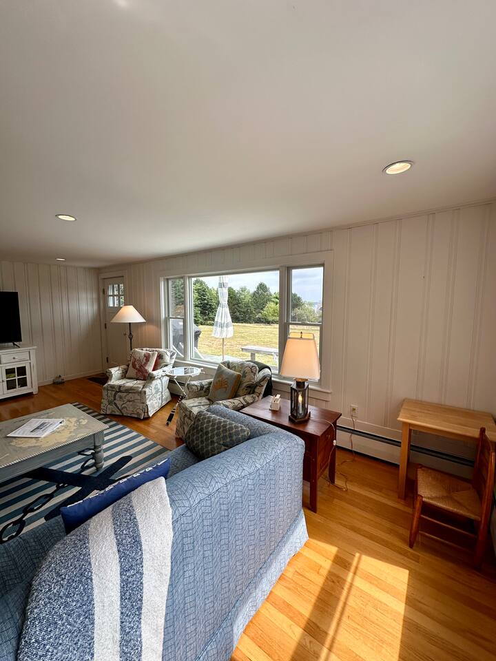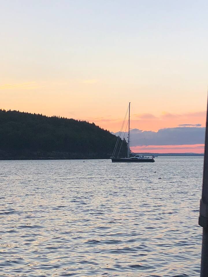 Hard Aground is an ocean-view home uniquely positioned right outside Southwest Harbor. Enjoy picturesque views of the Western Way and Cranberry Island from the wood deck, dining, living, primary bedroom, and upstairs bedrooms. Guests will also enjoy the abundant wildlife of this quiet location. Deer and different types of birds often come to graze in the open fields each morning and evening. The home has a galley kitchen with granite counters, stainless steel appliances, dishwasher, Keurig and drip coffee maker, toaster, full pots and pans for cooking and hopefully anything else a family might need; there is dining/breakfast room with windows on each side for stunning views plus outdoor seating for dining. The family room has views out over the deck to the water, door to the deck, and smart tv for nightly movies. On the main level, you will find a room with king bed overlooking the lawn with water views and smart tv, another bedroom with queen-size bed, and a shared updated bathroom with walk-in shower, and laundry. The upstairs is cozy, with two bedrooms with water views, queen-sized beds, both with smart tv’s, one with crib, and an updated bathroom with a bathtub. Outside guest can enjoy a propane fire pit, Adirondack chairs, sun loungers, outdoor dining and propane grill. The property comes with two dedicated parking places. Many people choose to stay in Southwest Harbor during their visit to Acadia National Park for its convenient location and more relaxed pace. Southwest Harbor is situated just west of the southern entrance to Somes Sound on Mount Desert Island. It is the largest municipality on the island's southwestern "quiet side." The town is a hub of activity, with various great restaurants, shops, galleries, and eateries worth exploring. Some of these include the charming Little Notch Bakery, the renowned Red Sky, the local favorite Peter Trouts, The Cygnet Gallery, Cornerstone Gallery, Beals Lobster, Sawyers, Cafe Dry Dock, Tom Cat Tide, The Store, Southwest Cycle, and many more! Many come to Mount Desert Island to visit Acadia National Park and enjoy its beauty. You can get a yearly pass to the park or pay as you go. Our suggestion is to get the yearly that you can visit other national parks. Some of our favorite trails, which are mostly easy and dog friendly, are Asticou and Jordan Pond Path, Little Harbor Brook Trail, Carriage Trail Loop, Wonderland, Ship Harbor Trail, Echo Lake Trail, and many more. Our suggestion is to download the All Trails App and search for your skill level. Other exciting things to do is to go on a whale watching tour, ride the ferries to neighboring islands like Cranberry or Little Cranberry and explore those. Visit the bustling town of Bar Harbor and the smaller villages around the island. You can do all this by car or use the Island Explorer buss.