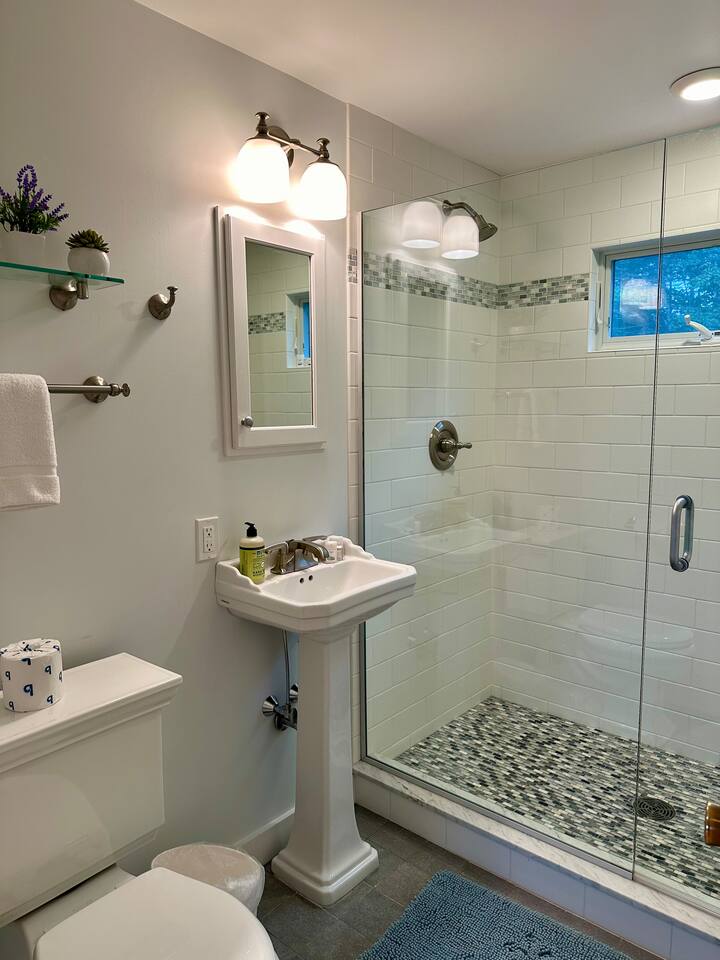Great spot for our family + dogs to relax. Robin’s home is lovely and comfortable throughout and she shared lots of helpful info about the area. Terrific layout for our family’s group of five adults. Enjoyed being able to take in the sunrise from indoors or outside. Kitchen is equipped very nicely. Beautiful, laid back coastal trails are close by and the modest drive to mountainous hikes, quiet waters for paddling, etc was well worth it for our adventure seekers.